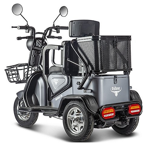 Трицикл Rutrike Навигатор используется для комфортного загородного передвижения вдвоем и перевозки бытовых грузов. Модель оснащена надежным электромотором и трансформирующейся конструкцией (заднее сиденье опрокидывается, образуя удобную мягкую спинку с подголовником). Аккумуляторы в комплект поставки не входят и приобретаются отдельно. Особенности: