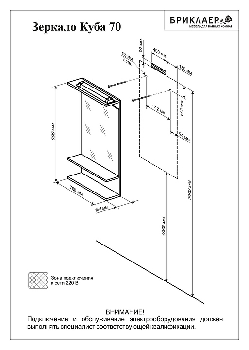 Зеркало БРИКЛАЕР Чили 70 выполнено в современном минималистичном стиле и отлично дополнит интерьер любой ванной комнаты. Благодаря подвесной конструкции модель не занимает много места, что позволяет экономить пространство в небольшой ванной комнате. Модель оснащена козырьком с подсветкой и 2 открытыми полками для хранения ванных принадлежностей. Корпус и фасад выполнены из ламинированной влагостойкой ДСП. Зеркальное полотно покрыто серебром с амальгамой, благодаря чему в период эксплуатации зеркало не деформируется, а отражение не искажается. В комплект поставки входят навески для крепления к стене, 2 галогеновых светильника со сменными лампами 12 V, выключатель с розеткой и электрический провод 0.5 м для подключения к электросети 220 В. Особенности: