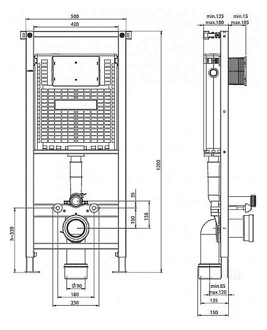 Система инсталляции для подвесного унитаза KollerPool WC Alcora ST1200