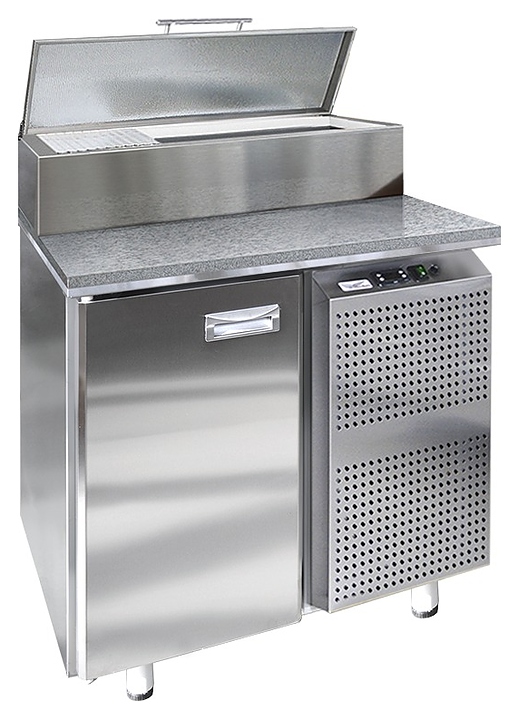 Холодильный стол Finist СХСпцг-700-1 предназначен для хранения скоро портящихся полуфабрикатов из мяса, рыбы и других ингридиентов для приготовления пиццы на предприятиях общественного питания и торговли. Модель оснащена расположенным сбоку агрегатным отсеком, столешницей с отсеком для гастроемкостей с крышкой, холодильныой камерой с распашной дверцей, устойчивыми ножками с подпятниками, кабелем питания с евровилкой и кнопочной панелью управления с цифровым дисплеем. Корпус выполнен из высококачественной нержавеющей стали, столешница – из гранита. Особенности: