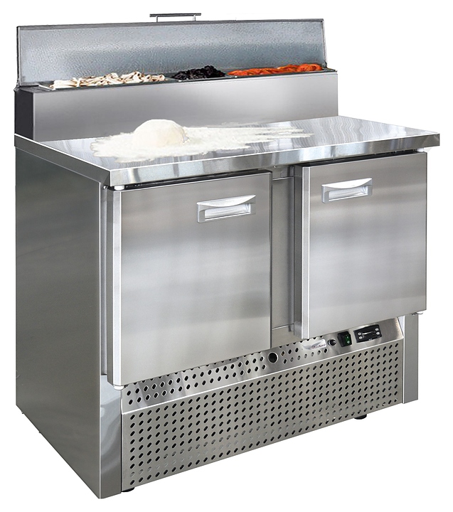 Холодильный стол Finist СХСнпц-700-2 предназначен для хранения скоро портящихся полуфабрикатов из мяса, рыбы и других ингридиентов для приготовления пиццы на предприятиях общественного питания и торговли. Модель оснащена расположенным снизу агрегатным отсеком, столешницей с отсеком для гастроемкостей с крышкой, 2 холодильными камерами с распашными дверцами, устойчивыми ножками с подпятниками, кабелем питания с евровилкой и кнопочной панелью управления с цифровым дисплеем. Корпус выполнен из высококачественной нержавеющей стали. Особенности: