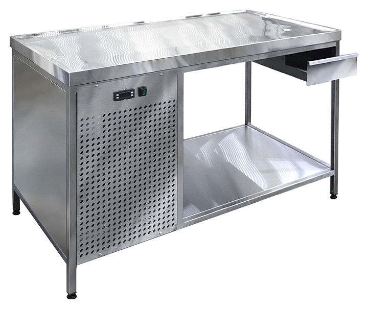 Холодильный стол Finist СХСо-1400-700 предназначен для разделки полуфабрикатов мяса и рыбы, а также для демонстрации и выкладки продуктов на предприятиях общественного питания и торговли. Модель оснащена расположенным сбоку агрегатным отсеком, столешницей с охлаждаемой поверхностью, открытой полкой для хранения инвентаря, выдвижным ящиком-лотком, устойчивыми ножками с подпятниками, кабелем питания с евровилкой и кнопочной панелью управления с цифровым дисплеем. Корпус выполнен из высококачественной нержавеющей стали. Особенности: