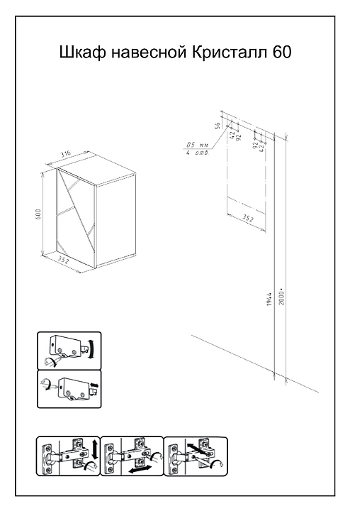 Шкаф подвесной БРИКЛАЕР Кристалл 60 35,2х60 ясень анкор темный, софт графит