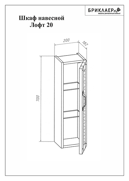 Шкаф БРИКЛАЕР Лофт 20 выполнен в эко-стиле и отлично дополнит интерьер любой ванной комнаты. Модель оснащена распашной дверью с 2 стеклянными полочками, на которых удобно разместить все необходимые личные принадлежности. Благодаря подвесной конструкции модель не занимает много места, что позволяет экономить пространство в небольшой ванной комнате, а также облегчает уборку. Корпус изделия выполнен из влагостойкой ЛДСП, отличающейся прочностью, устойчивостью к перепадам температурных режимов, способностью сохранять цвет и форму изделия в первозданном виде длительный срок, фасад - из МДФ, фурнитура - из металла. Особенности: