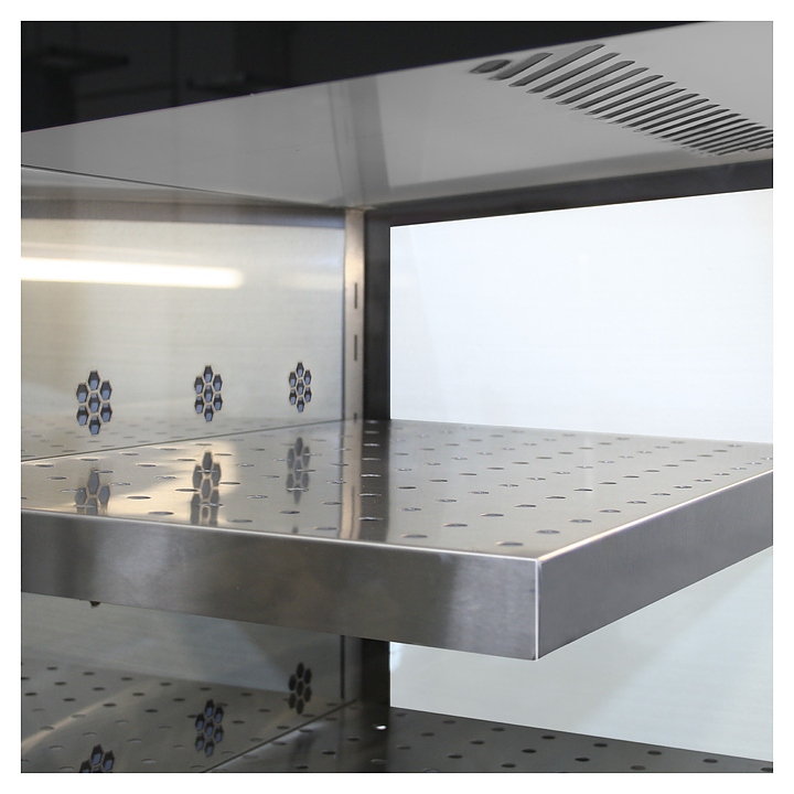 Напольная холодильная витрина Finist FRESH F9/6/115 предназначена для демонстрации, кратковременного хранения и охлаждения продуктов и напитков на предприятиях общественного питания и торговли. Модель оснащена полкой, устойчивыми опорами, кабелем питания с вилкой и кнопочной панелью управления с цифровым дисплеем. Корпус и полки выполнены из высококачественной нержавеющей стали, боковые панели – из прочного стекла в металлической рамке. Особенности: