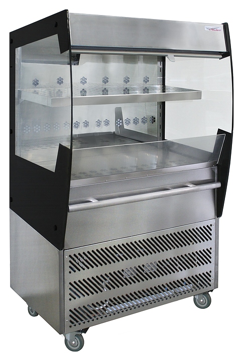 Напольная холодильная витрина Finist FRESH F12/6/115 предназначена для демонстрации, кратковременного хранения и охлаждения продуктов и напитков на предприятиях общественного питания и торговли. Модель оснащена полкой, устойчивыми опорами, кабелем питания с вилкой и кнопочной панелью управления с цифровым дисплеем. Корпус и полки выполнены из высококачественной нержавеющей стали, боковые панели – из прочного стекла в металлической рамке. Особенности: