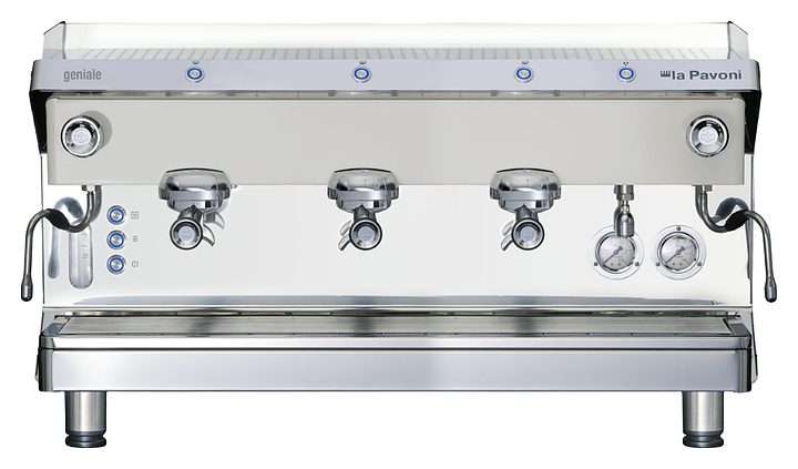 Кофемашина La Pavoni GENIALE3MBEU серии GENIALE используется на предприятиях общественного питания и торговли, в офисах, а также в домашних условиях для приготовления чая, кофе и кофейных напитков. Модель оснащена 2 литыми никелированными латунными группами с вертикальной инфузионной камерой. Каплесборник с решеткой выполнен из нержавеющей стали AISI 304, бойлер - из меди. В комплект поставки входят 4 холдера: 1 с одним носиком и 3 с двумя носиками. Особенности: