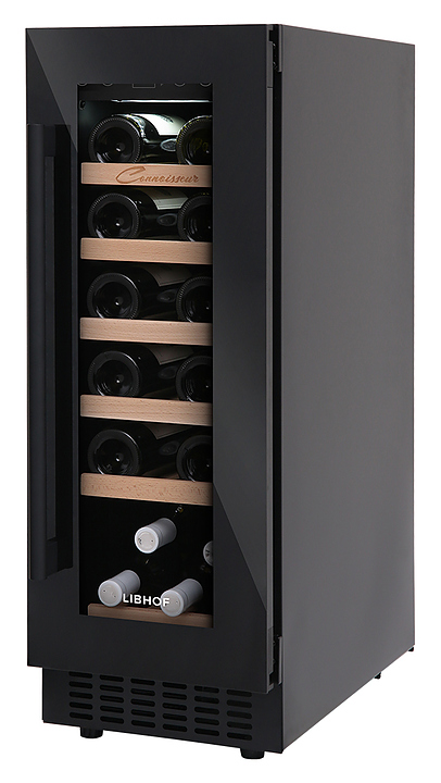 Встраиваемый винный шкаф Libhof Connoisseur CX-19 Black предназначен для хранения при оптимальных условиях бутилированного вина различных сортов в барах, ресторанах, специализированных магазинах, подсобных складских помещениях, а также в домашних условиях. Модель оснащена холодильной камерой с 6 съемными полками, распашной дверью с внутренними петлями, длинной рукояткой и прозрачным дымчатым обзорным стеклом с защитным напылением от ультрафиолетовых лучей. Корпус выполнен из металла, полки – из массива буковой древесины. Особенности: