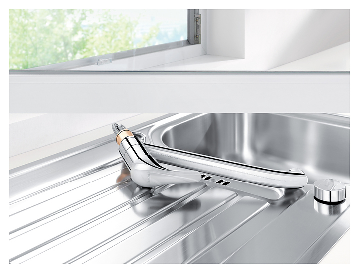 Смеситель Blanco Daras-F 521751 предназначен для установки на кухне под окном. Модель оснащена удобным рычагом, высоким поворотным изливом, керамическим картриджем, легко складывается под окно и не будет мешать закрывать и открывать раму. Однорычажный тип управления позволяет очень быстро и плавно регулировать подачу воды одной рукой. Изделие выполнено из высококачественной латуни, которая отличается прочностью, долговечностью и устойчивостью к перепадам температур. Особенности: