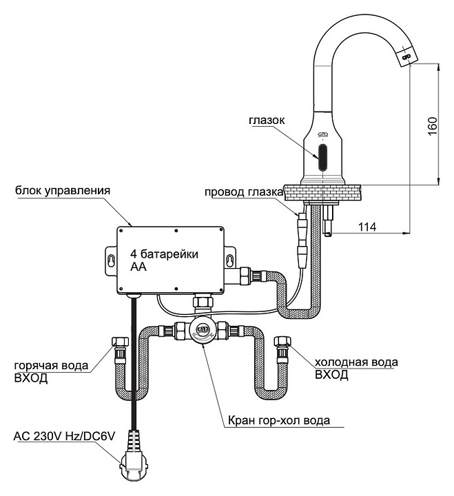 Смеситель для раковины GPD Photocell FLB11 с ИК-сенсором и функцией смешивания воды, хром
