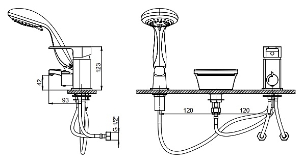 Смеситель для ванны с душем GPD Atros MAK67 на 3 отверстия