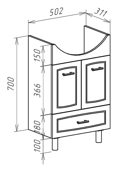 Тумба под раковину Bellezza Классик 55 с ящиком