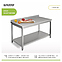Разделочный стол VIATTO VA-WT10070BS предназначен для разделки гастрономических продуктов перед их обработкой на предприятиях общественного питания. Каркас выполнен из нержавеющей трубы, столешница - из нержавеющей стали толщиной 0,8 мм с подложкой из ДВП высокой плотности. Дополнительные характеристики: