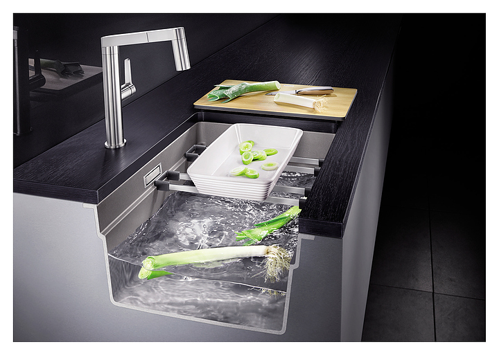 Мойка Blanco Etagon 700-U Silgranit 525168 предназначена для рационального планирования рабочего места на кухне. Чаша прямоугольной формы идеально сочетается с четкими формами дизайна. Современный перелив C-overflow помогает контролировать уровень воды в чаше и препятствует ее вытекания через край. Мойка изготовлена из SILGRANIT® PuraDur®. В комплект поставки входят отводная арматура InFino® с корзинчатым вентилем 3 ½“ и держатели Etagon из нержавеющей стали. Особенности: