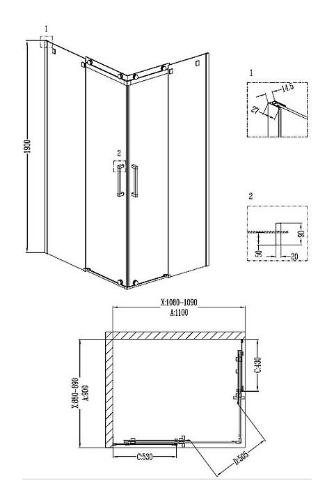 Уголок душевой Grossman Cosmo GR-1110L 110х90 см, левый