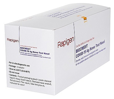 Набор экспресс-тестов на COVID-19 RapiGEN BIOCREDIT COVID-19 Ag Home Test Nasal 5 шт.
