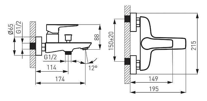 Смеситель для ванны настенный FERRO ADORE WHITE BDR1 белый