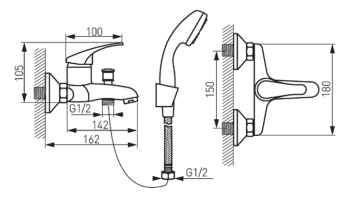 Смеситель для ванны настенный с гарнитуром FERRO BASIC BBC11 хром