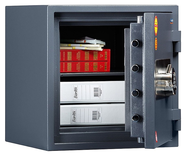 Огневзломостойкий сейф Valberg ГАРАНТ ЕВРО 46 EL предназначен для безопасного хранения документации, наличных денежных средств, ювелирных изделий и других ценностей в гостиницах, отелях, офисах, квартирах и загородных домах. Модель оснащена распашной трехкомпонентной дверью на усиленных внешних петлях. Корпус выполнен из высококачественной стали с износостойким эмалированным покрытием структурированный графит (RAL 7024), горизонтальная вставка на лицевой панели – из нержавеющей стали, внутренняя заливка двери и стенок – тяжелый бетон с запатентованной системой армирования. В комплект поставки входят анкерный болт. Особенности:
