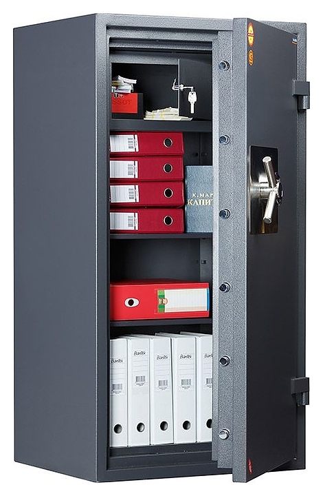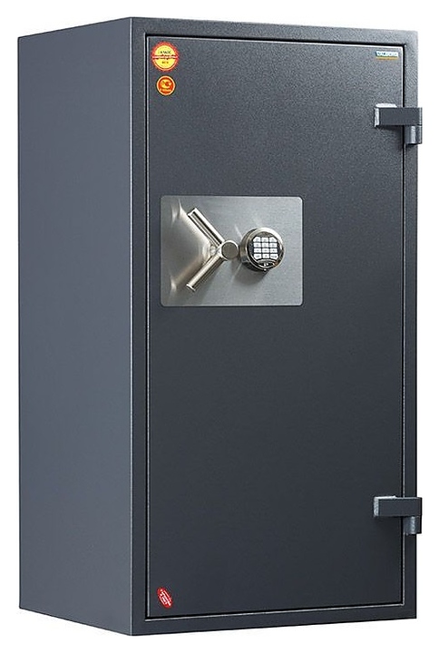 Огневзломостойкий сейф Valberg ГАРАНТ ЕВРО 133Т EL предназначен для безопасного хранения документации, наличных денежных средств, ювелирных изделий и других ценностей в гостиницах, отелях, офисах, квартирах и загородных домах. Модель оснащена распашной трехкомпонентной дверью на усиленных внешних петлях и внутренним трейзером с самостоятельной запираемой на ключ дверцей. Корпус выполнен из высококачественной стали с износостойким эмалированным покрытием структурированный графит (RAL 7024), горизонтальная вставка на лицевой панели – из нержавеющей стали, внутренняя заливка двери и стенок – тяжелый бетон с запатентованной системой армирования. В комплект поставки входят анкерный болт и ключи. Особенности: