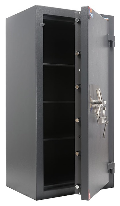 Взломостойкий сейф Valberg ФОРТ 1368 KL предназначен для безопасного хранения документации, наличных денежных средств, ювелирных изделий, других ценностей и лекарственных препаратов в гостиницах, отелях, офисах, квартирах и загородных домах. Модель оснащена распашной двухкомпонентной дверью на усиленных внешних петлях. Корпус выполнен из высококачественной стали с износостойким грунт-эмалированным покрытием структурированный графит, вставка на лицевой панели – из нержавеющей стали, внутренняя заливка двери и стенок – тяжелый бетон с запатентованной системой армирования. В комплект поставки входят анкерный болт и 3 ключа. Особенности: