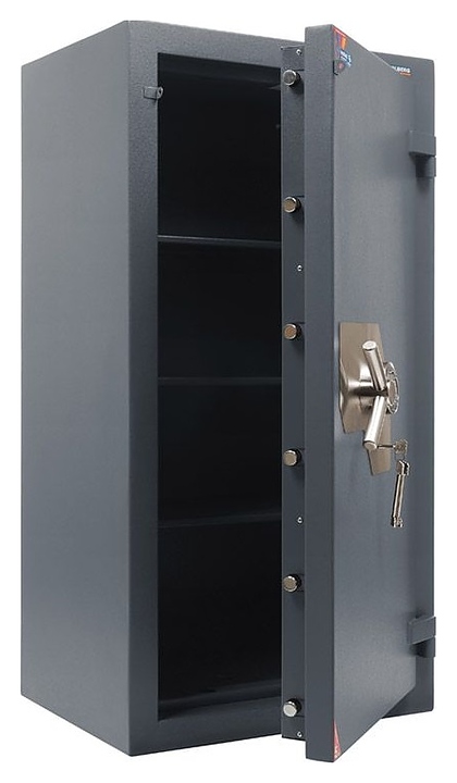 Взломостойкий сейф Valberg ФОРТ 1668 EL предназначен для безопасного хранения документации, наличных денежных средств, ювелирных изделий, других ценностей и лекарственных препаратов в гостиницах, отелях, офисах, квартирах и загородных домах. Модель оснащена распашной двухкомпонентной дверью на усиленных внешних петлях. Корпус выполнен из высококачественной стали с износостойким грунт-эмалированным покрытием структурированный графит, вставка на лицевой панели – из нержавеющей стали, внутренняя заливка двери и стенок – тяжелый бетон с запатентованной системой армирования. В комплект поставки входят анкерный болт и ключи. Особенности: