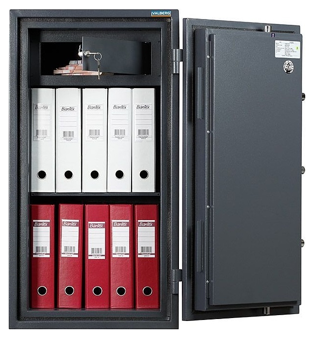 Огневзломостойкий сейф Valberg ГАРАНТ 95 T предназначен для безопасного хранения документации, наличных денежных средств, ювелирных изделий и других ценностей в гостиницах, отелях, офисах, квартирах и загородных домах. Модель оснащена распашной трехкомпонентной дверью на усиленных внешних петлях и внутренним трейзером с самостоятельной запираемой на ключ дверцей. Корпус выполнен из высококачественной стали с износостойким эмалированным покрытием структурированный графит (RAL 7024), внутренняя заливка двери и стенок – огнестойкий бетон. В комплект поставки входят ключи. Особенности: