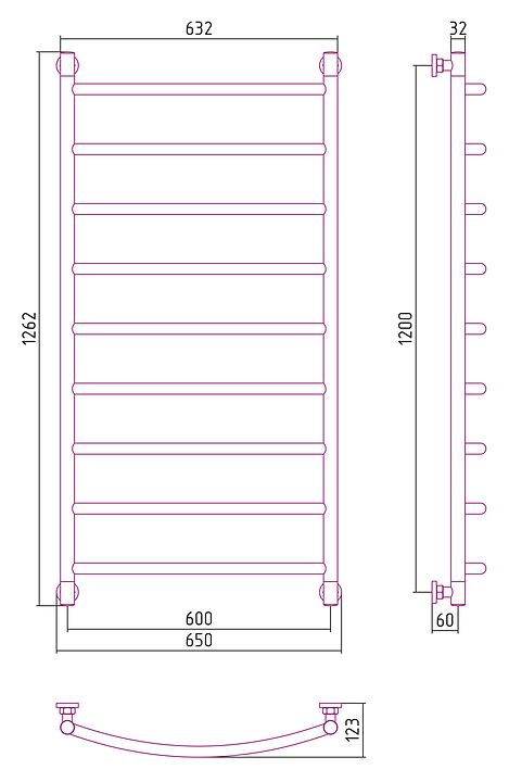 Полотенцесушитель водяной Сунержа Галант+ 120x60 см белый
