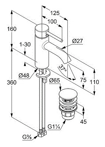 Смеситель для раковины KLUDI Bozz Black 382663976 чёрный матовый