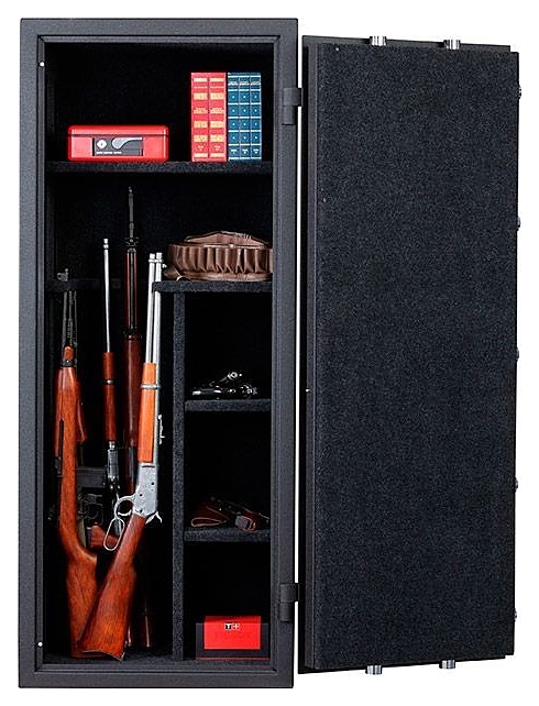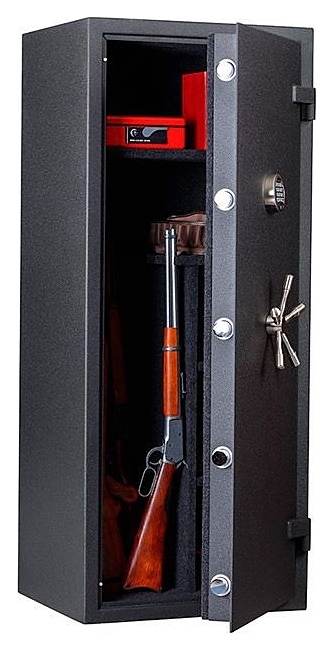 Оружейный сейф Valberg TIGER 60 предназначен для безопасного хранения длинноствольного огнестрельного оружия, патронов и аксессуаров в гостиницах, отелях, частных домах и квартирах. Модель оснащена распашной двухкомпонентной дверью на усиленных внешних петлях. Корпус выполнен из высококачественной стали с покрытием черный муар, внутренняя отделка – из износостойкого искусственного материала карпет. Особенности: