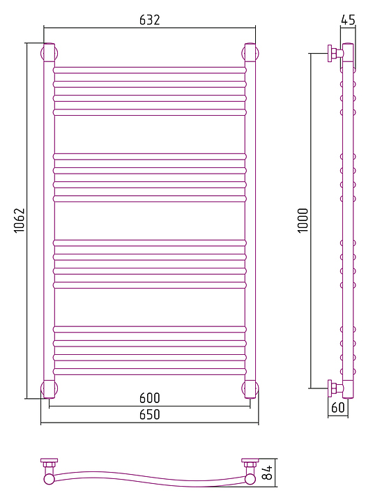 Полотенцесушитель водяной Сунержа Флюид + 100x60 см белый