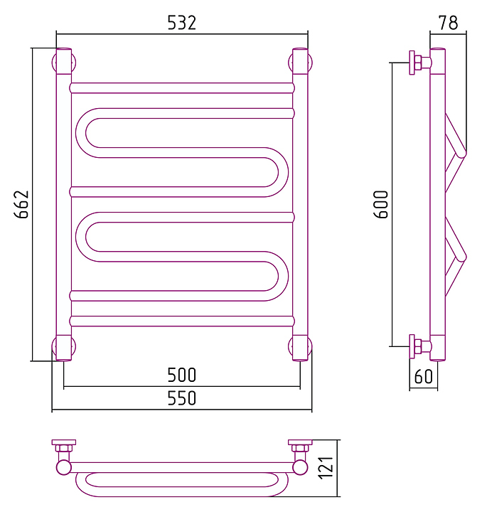 Полотенцесушитель водяной Сунержа Элегия+ 60x50 см без покрытия