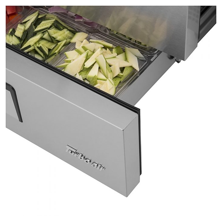 Шеф-база Turbo air TCBE-52SDR-N предназначена для обработки, охлаждения, заморозки и длительного хранения пищевых продуктов на предприятиях общественного питания и торговли. Модель оснащена столешницей, 2 ящиками и 4 колесами. Корпус, столешница и ящики выполнены из нержавеющей стали, изоляция - из полиуретана высокой плотности. Гастроемкости в комплект поставки не входят и приобретаются отдельно. Особенности:
