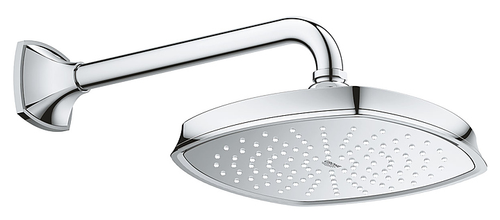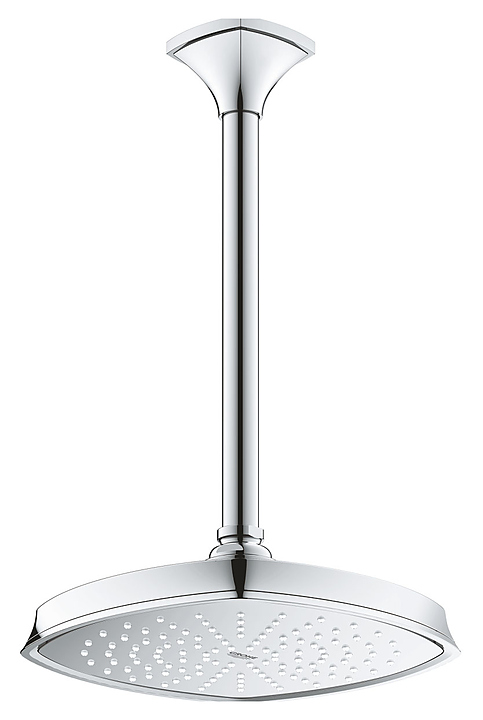 Верхний душ Grohe Grandera 210 27974000 предназначен для использования в ванных комнатах. Модель оснащена форсунками SpeedClean против известковых отложений. Изделие выполнено из металла с хромированным покрытием. Кронштейн в комплект поставки не входит и приобретается отдельно. Особенности:
