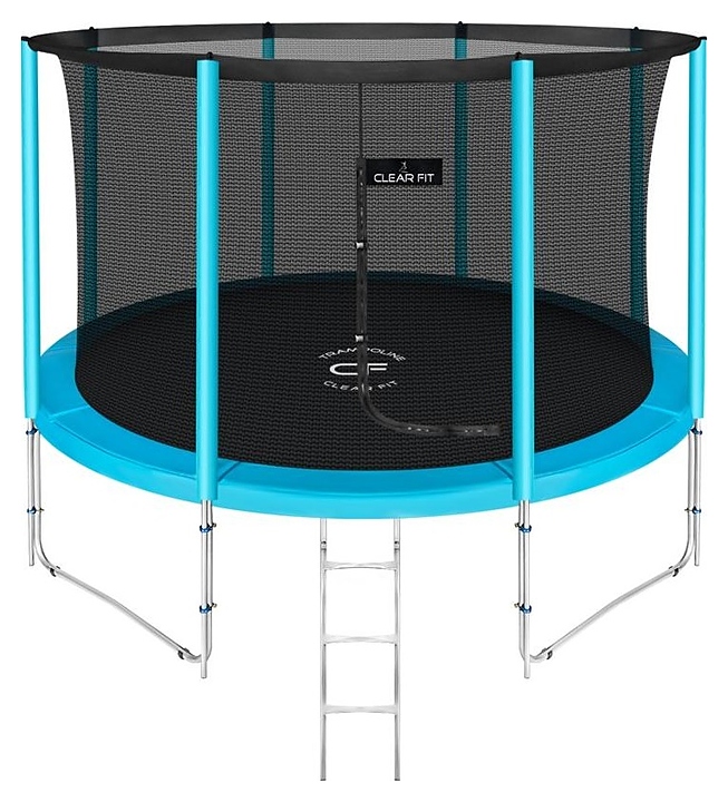 Каркасный батут CLEAR FIT ElastiqueHop 14Ft предназначен для широкого спектра тренировок с целью улучшения физической формы, выносливости, координации, работы сердечно-сосудистой и опорно-двигательной систем, нормализации метаболизма и снижения веса. Модель оснащена прыжковым полотном и трубчатым каркасом с усиленными резьбовыми скобами. Каркас выполнен из стали Q195 с двойной антикоррозийной оцинковкой, прыжковое полотно – из перматрона (Permatron), пружины, метизы и соединения – из гальванизованной стали, двухслойная защитная сеть и нижний слой мата – из полиэтилена (PE), внешний слой обшивки стоек и верхний слой мата – из негорючего поливинилхлорида (PVC) бирюзового цвета, наполнитель мата и стоек – эластичный пенополиэтилен (EPE). Баскетбольный сет не входит в комплект поставки и приобретается отдельно. Комплектация: