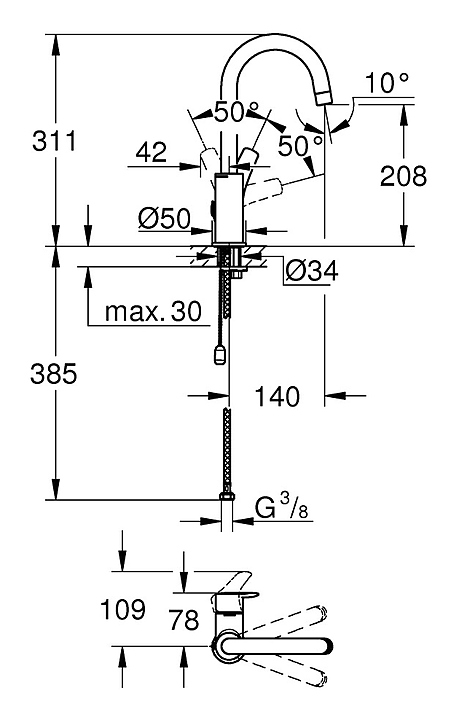 Смеситель для раковины Grohe Eurosmart 23743003