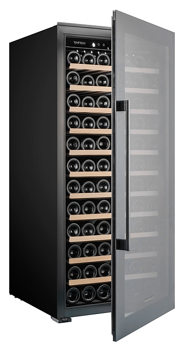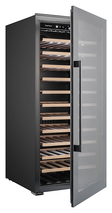 Винный шкаф Temptech Oslo OZ124SB предназначен для охлаждения, хранения при оптимальных условиях и демонстрации бутилированного вина различных сортов в барах, ресторанах, специализированных магазинах, подсобных складских помещениях, а также домашних условиях. Модель оснащена холодильной камерой с 11 выдвижными полками, распашной дверью на перенавешиваемых петлях с вертикальной рукояткой и обзорным окном. Корпус выполнен из металла с антикоррозийным покрытием, полки – из массива буковой древесины. Особенности: