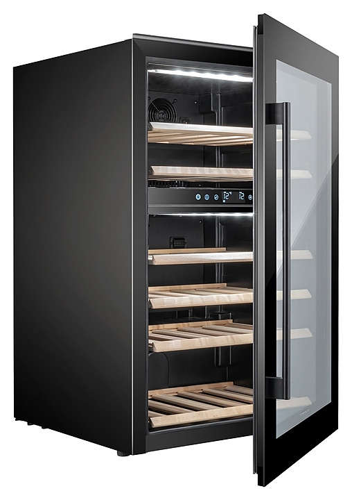Винный шкаф Temptech Oslo OZ90DB предназначен для охлаждения, хранения при оптимальных условиях и демонстрации бутилированного вина различных сортов в барах, ресторанах, специализированных магазинах, подсобных складских помещениях, а также домашних условиях. Модель оснащена холодильной камерой с 6 выдвижными полками, распашной дверью на перенавешиваемых петлях с вертикальной рукояткой и обзорным окном. Корпус выполнен из металла с антикоррозийным покрытием, полки – из массива буковой древесины. Особенности: