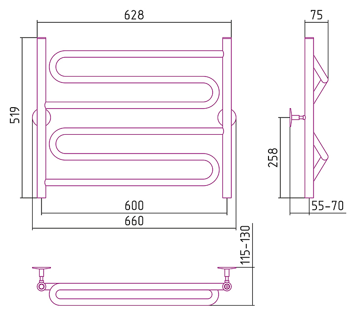 Полотенцесушитель водяной Стилье Универсал-51 60х60 см без покрытия