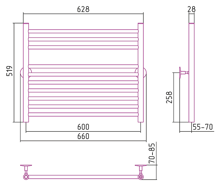 Полотенцесушитель водяной Стилье Универсал-53 60х60 см без покрытия