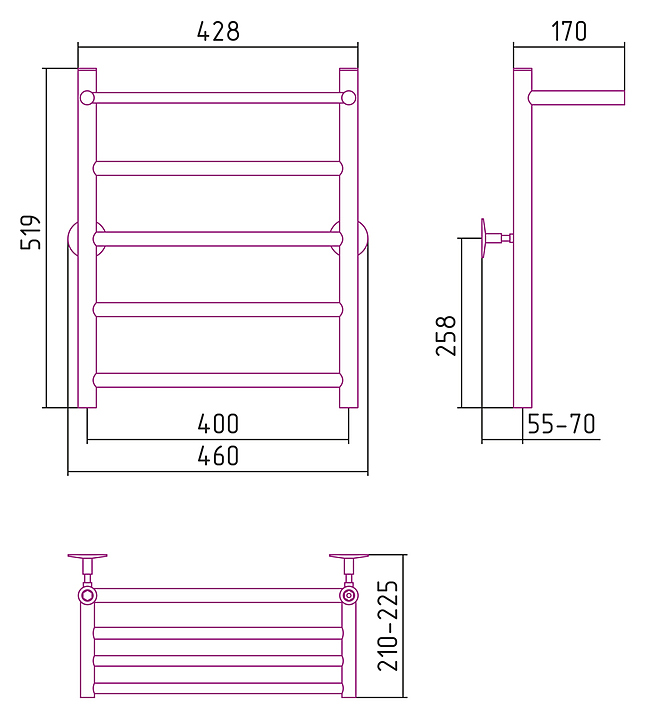 Водяной полотенцесушитель Стилье Универсал-54 предназначен для подогрева и сушки полотенец, а также для обогрева ванных комнат в квартирах, коттеджах и частных домах. Модель оснащена полкой и 4 перекладинами для удобного использования. Изделие выполнено из нержавеющей стали AISI 304 L, отличающейся прочностью, долговечностью и устойчивостью к перепадам температур.
