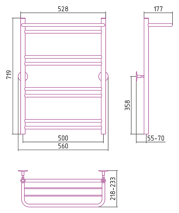 Полотенцесушитель водяной с полкой Стилье Универсал-56 80х50 см без покрытия