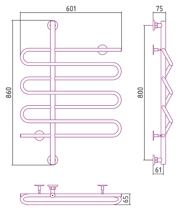 Полотенцесушитель водяной Стилье Версия-В 80x60 см без покрытия