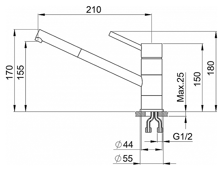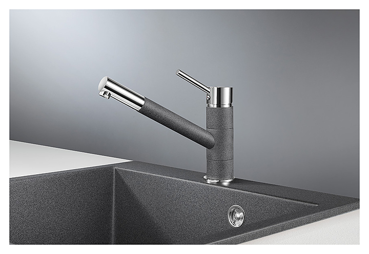 Смеситель Granula GR-0010 предназначен для использования на кухне для подачи горячей и холодной воды. Модель оснащена низким поворотным изливом и керамическим картриджем. Однорычажный тип управления позволяет очень быстро и плавно регулировать подачу воды одной рукой. Изделие выполнено из высококачественной латуни, которая отличается прочностью, долговечностью и устойчивостью к перепадам температур. В комплект поставки входят гибкая подводка и комплект креплений. Особенности: