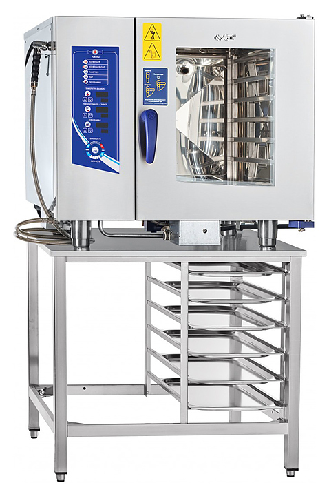 Пароконвектомат Abat ПКА 6-1/1ВМ2 предназначен для обжаривания, приготовления на пару, бланширования, запекания и других видов тепловой обработки продуктов на предприятиях общественного питания и торговли. Оборудование заменяет сразу несколько видов приборов: плиту, конвекционную печь, жарочный шкаф, духовку, опрокидывающуюся сковороду, пищеварочный котел, фритюрницу и др. Приготовленные в пароконвектомате блюда сохраняют все полезные вещества. Модель оснащена подсветкой, легкосъемным жировым фильтром, душем для мойки и дверью с двойным остеклением. Пароконвектомат используется совместно с вытяжным зонтом Abat ЗВВ-800П и ЗВВ-800. Лицевые панели облицовки выполнены из нержавеющей стали, крыша, боковые и задние панели -из окрашенного металла. Рекомендуется дополнительно приобрести водоумягчитель и фильтр-систему для очистки и смягчения воды. Подробнее о необходимости водоподготовки читайте здесь. Особенности: