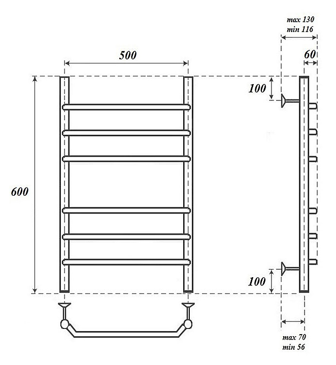 Полотенцесушитель водяной Point Венера PN07156 П6 500x600, хром