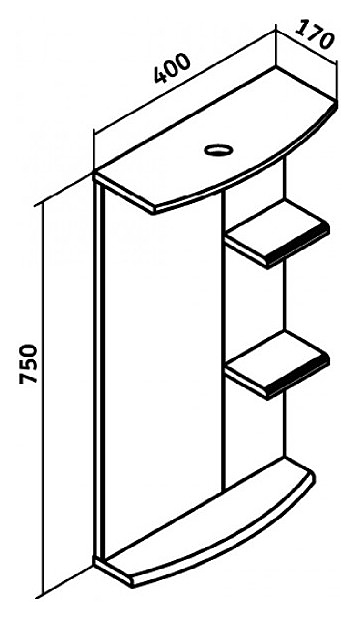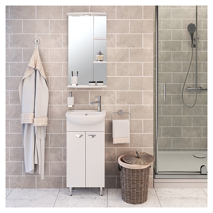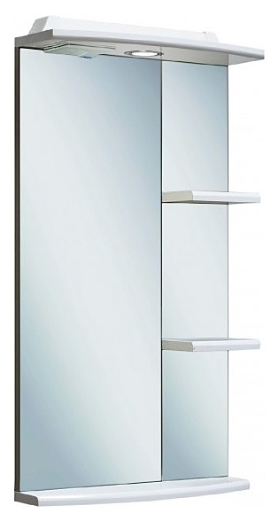 Зеркало Runo Азов 40 выполнено в современном стиле и идеально впишется в интерьер любой ванной комнаты. Благодаря подвесной конструкции модель не занимает много места, что позволяет экономить пространство, а также облегчает уборку. Модель оснащена козырьком с врезным светодиодным светильником и розеткой с выключателем, а также 2 открытыми полочками. Корпус выполнен из влагостойкой ЛДСП, фасад - из МДФ с пленкой ПВХ. Особенности: