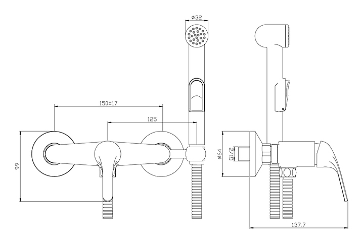 Смеситель для биде с гигиеническим душем Rossinka Y25-52