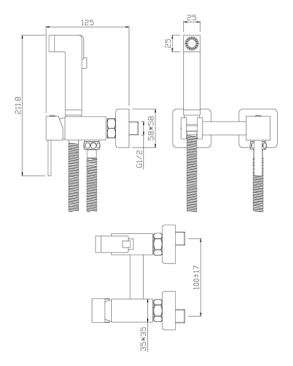 Смеситель для биде с гигиеническим душем Rossinka X25-54