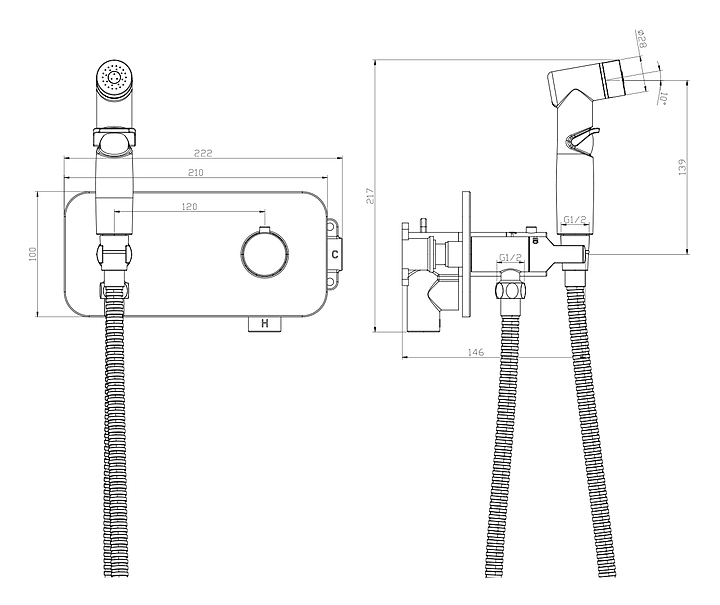 Смеситель для биде с гигиеническим душем Rossinka X25-59